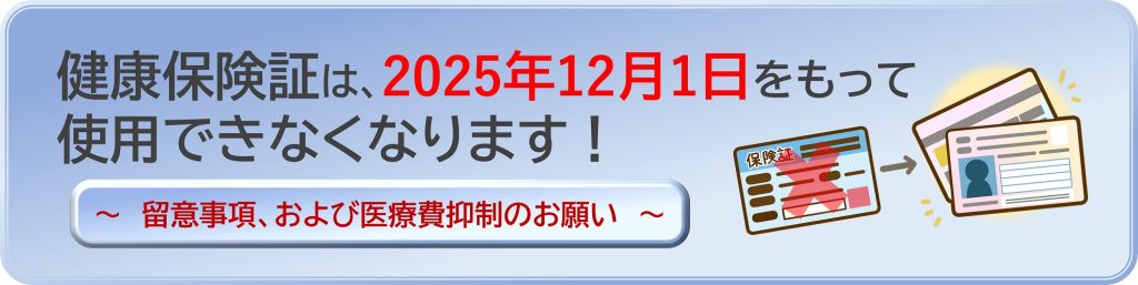 昨年11月までに発行され、多くの方が使用している健康保険証は、2025年12月1日をもって使用できなくなりますので、以下の留意事項をご確認ください。